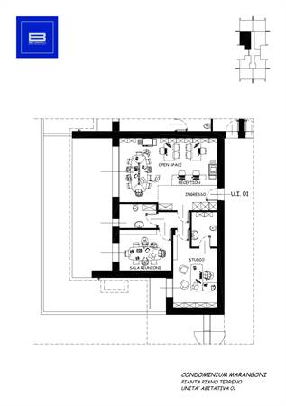 Immobile sito al piano terra per complessivi 115,50 mq commerciali circa, così composto: ingresso su ampio open space con zona reception, una sala riunioni e un altro locale operativo oltre doppi servizi e grazioso giardino privato. Un ambiente di lavoro ben organizzato, con una funzionale suddivisione degli spazi e un giardino che ne valorizza l’estetica e la vivibilità.