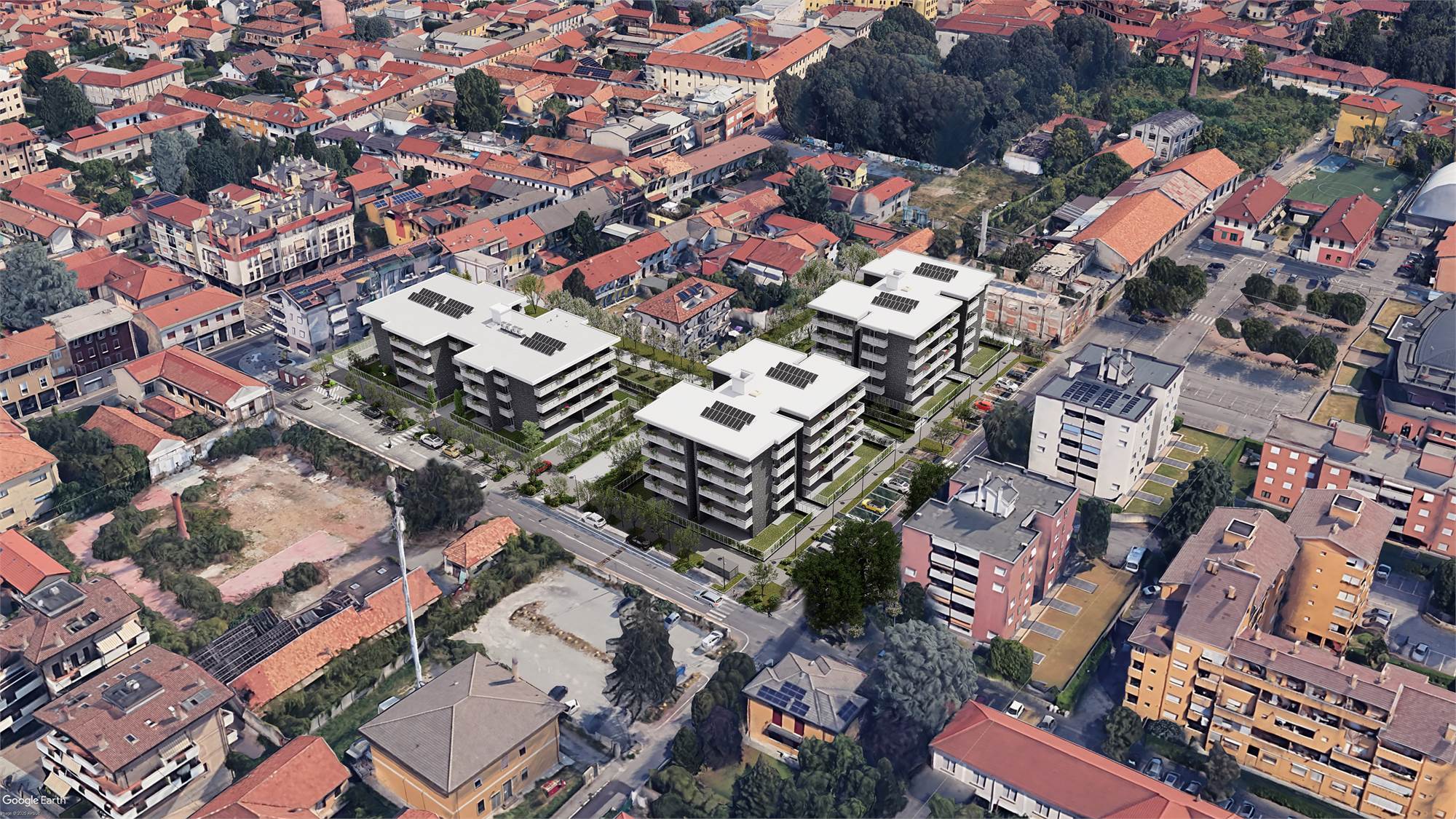 Il piano di lottizzazione prevede la riqualificazione totale della zona con creazione di una nuova viabilità pedonale e veicolare, oltre parcheggi e aree verdi attrezzate. La Residenza, costituita da N. 3 corpi di fabbrica, è ubicata in zona centrale del paese, nelle immediate vicinanze delle ferrovie nord e di tutti i servizi di primaria necessità, comprese le scuole e asili.