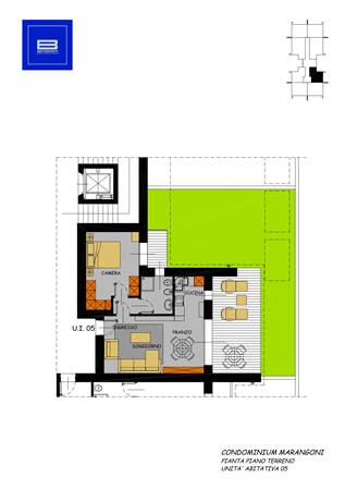 Appartamento di 2 locali per complessivi 75,50 mq commerciali circa. Presenta: ingresso sulla zona giorno con cucina a vista ed accesso diretto al giardino di proprietà di circa 60 mq, disimpegno notte, bagno, camera da letto.