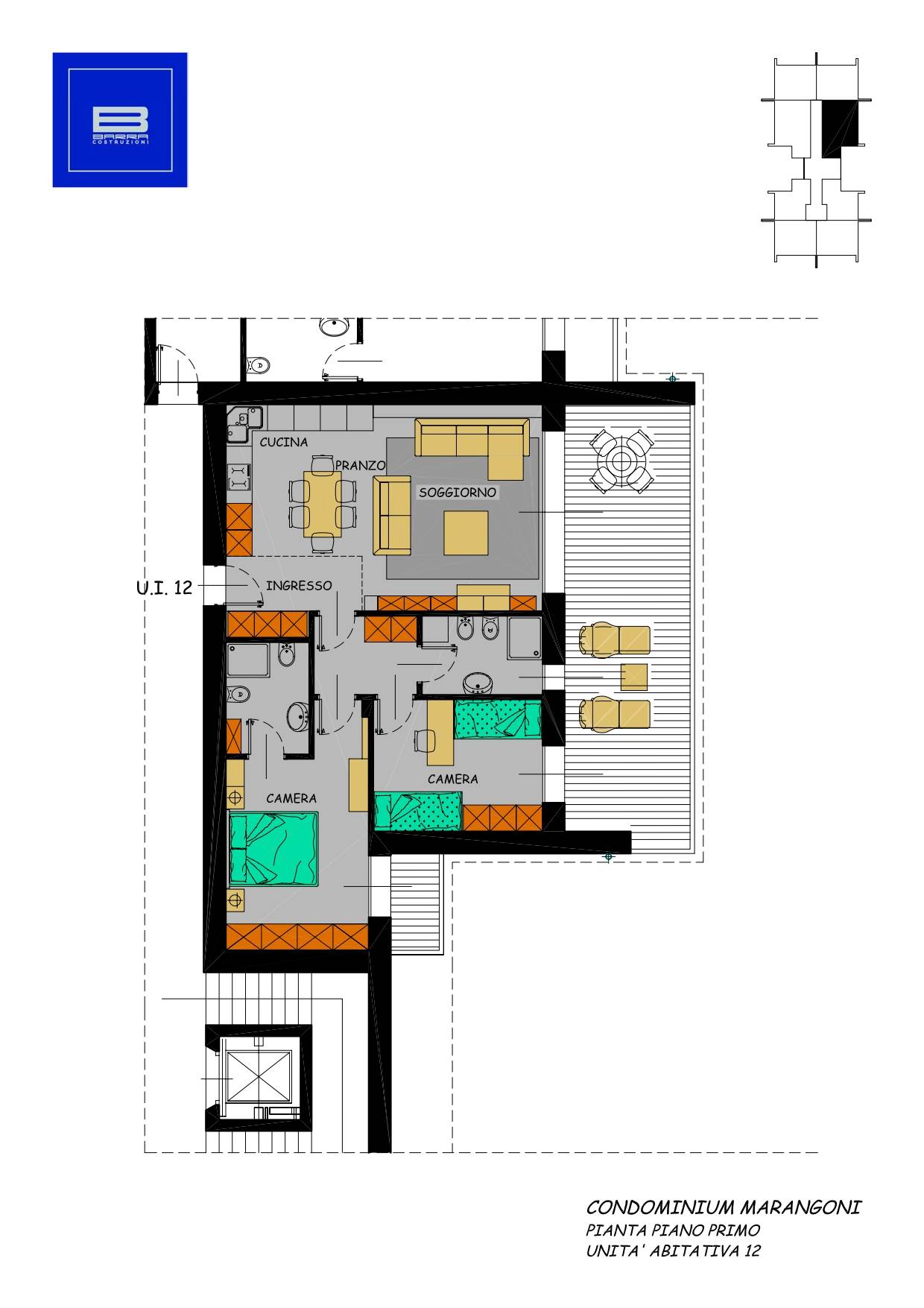 Proponiamo appartamenti di 2-3-4 locali che si sviluppano in piano terra con giardini privati, piani primo-secondo-terzo con splendidi terrazzi loggiati per un totale di 3 uffici e 29 abitazioni oltre cantine e box doppi.
