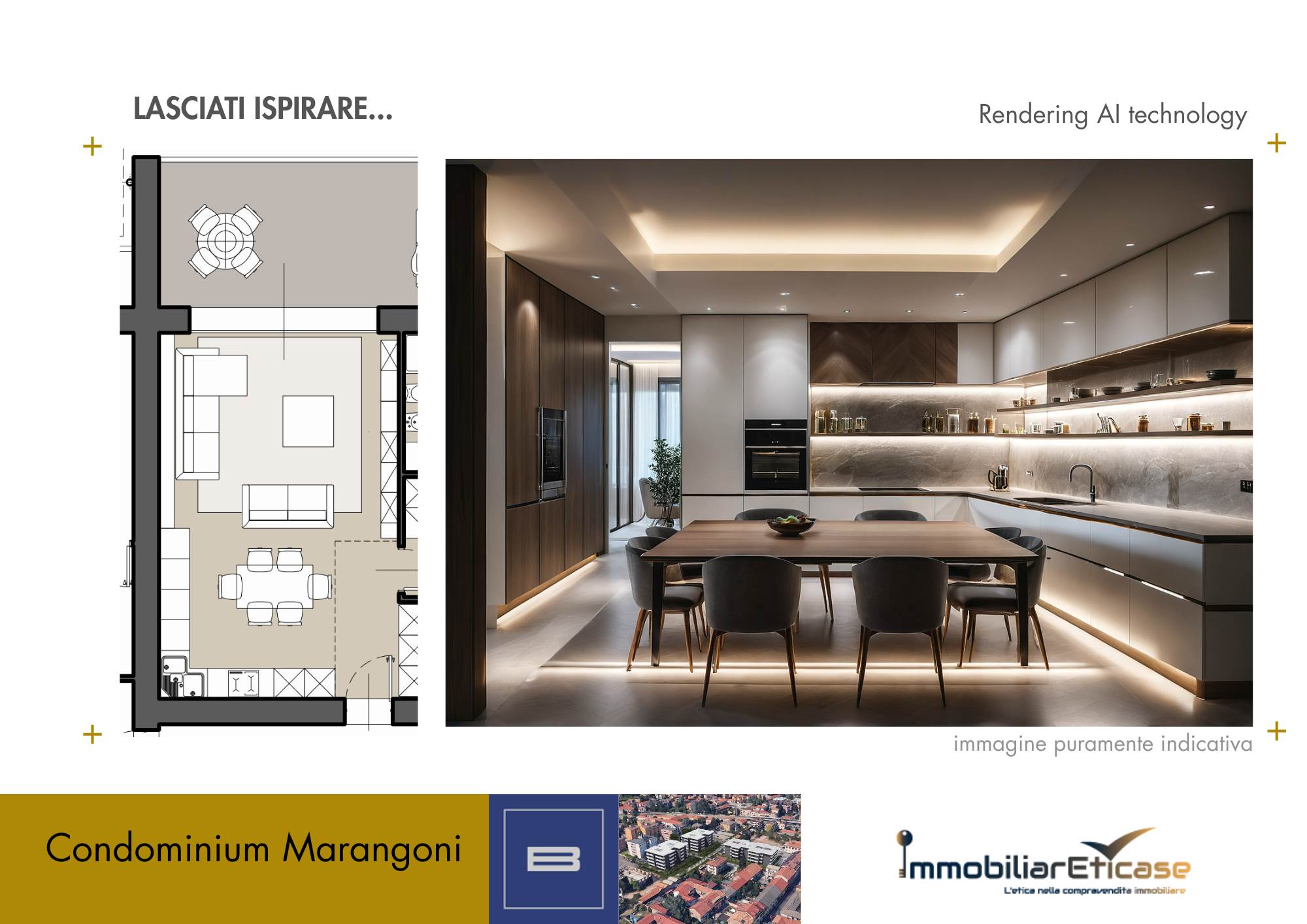 Appartamento di 3 locali per complessivi 115,50 mq commerciali circa così composto: ingresso su luminoso soggiorno con cucina a vista ed accesso a splendido terrazzo loggiato; disimpegno notte, doppi servizi e n. 2 camere da letto di cui la matrimoniale munita di bagno padronale e balcone di servizio. Completa la soluzione una cantina al piano interrato.