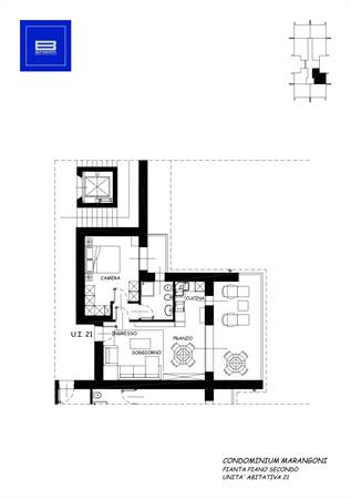 Appartamento di 2 locali per complessivi 75,50 mq commerciali circa. Presenta: ingresso sulla zona giorno con cucina a vista proiettata su splendido terrazzo loggiato, disimpegno notte, bagno, camera da letto con balcone di servizio.